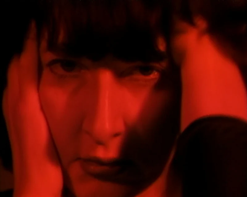 Her ‘Blue Period’ is one marked by unease. Again, she bites at her fingernails, this time as though intent on unspooling herself; her teeth a specular reflection as her face shifts through phases. Doe-eyed, she oscillates between indifference and savagery. Here, blue evokes melancholia and detachment. The slides, like much of her early work, test the boundaries of masochism.