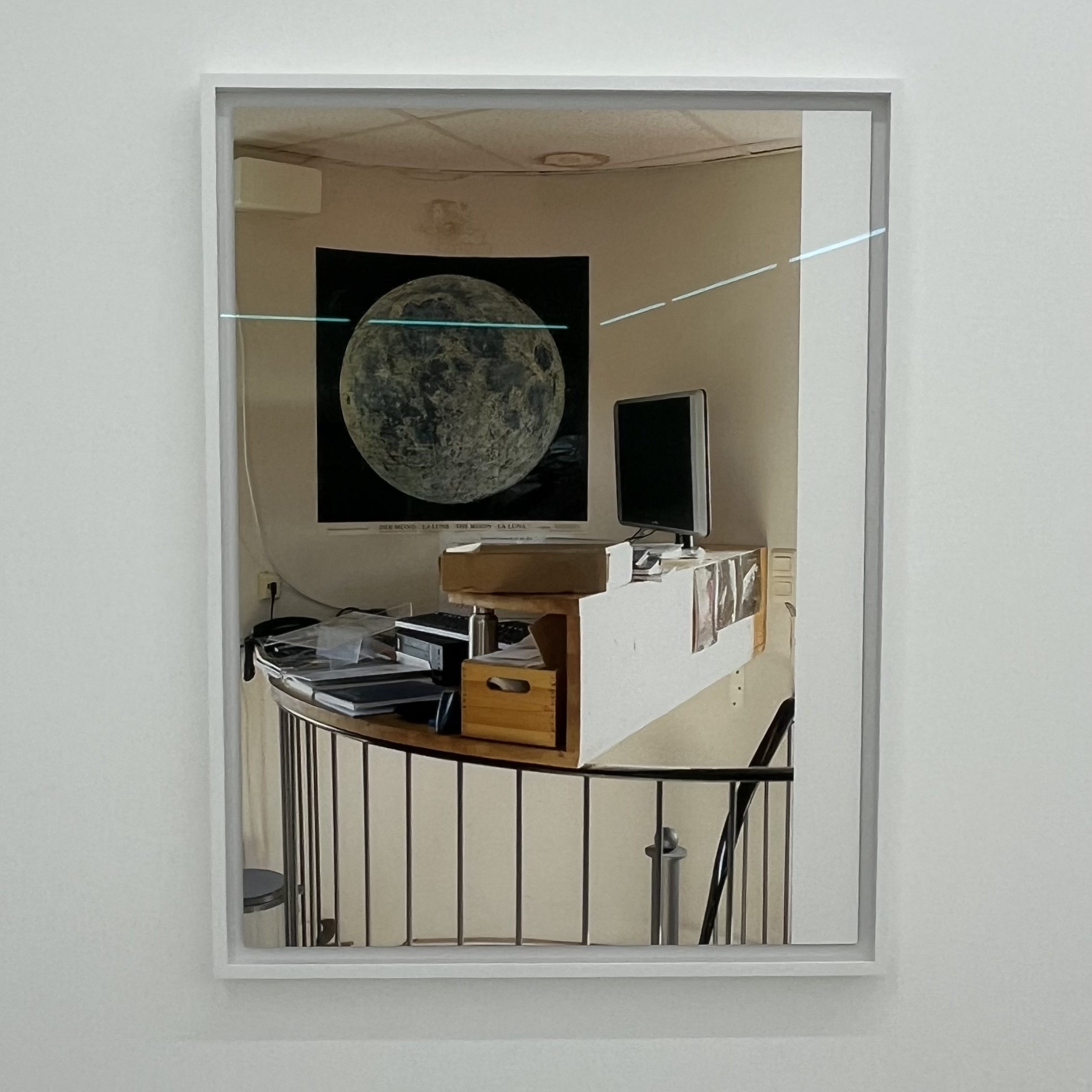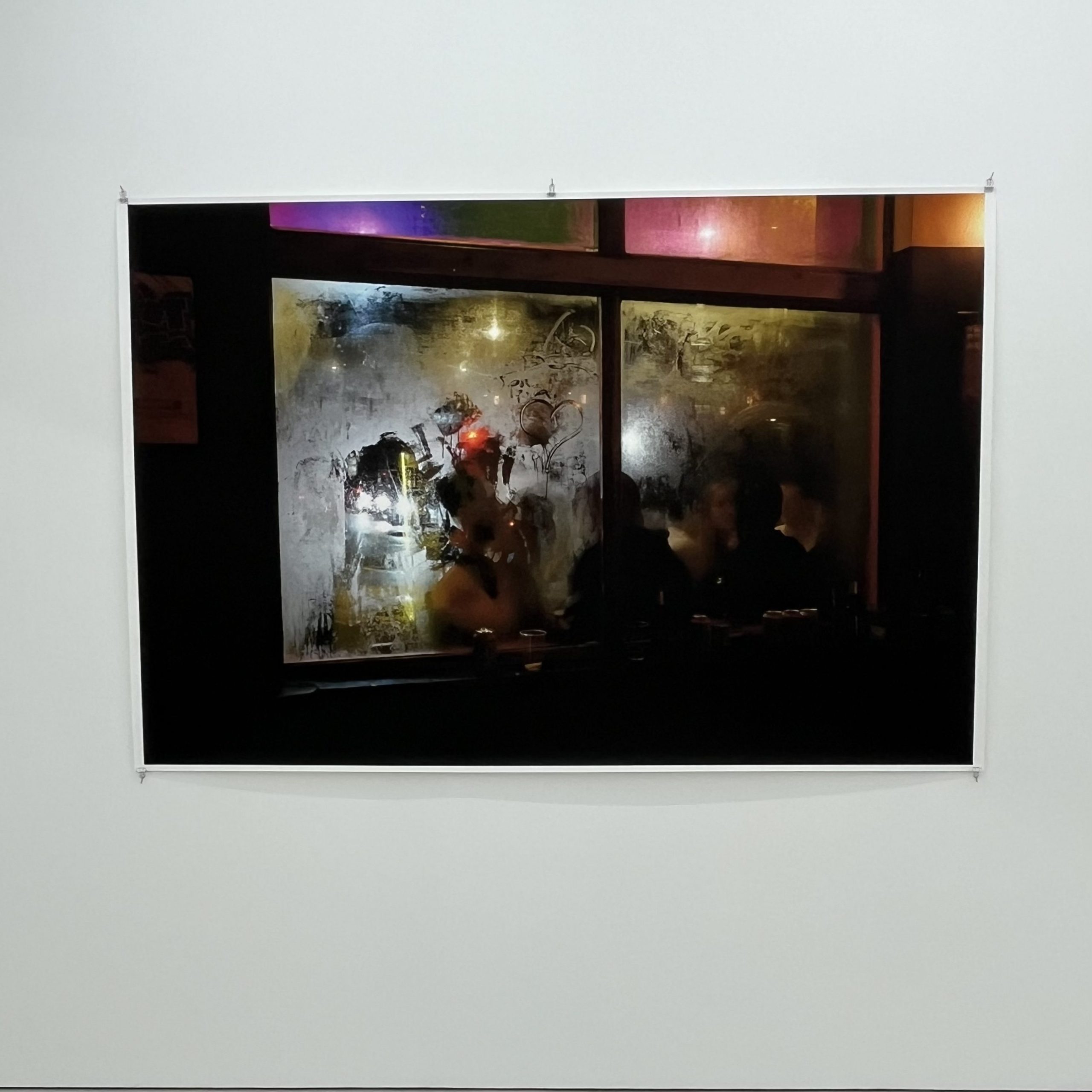Tillmans’s studio at Herald Street introduces a new display architecture: wooden shadowboxes containing collages of photocopied media, texts, and photographs. As the arrangements interlink with Tillmans’s earlier constructions, we begin to see how the outside has been sliced into the artist’s compositions. Works such as The Glove That Fits (2024) show this clearly: through a foggy bar window we observe the shapes of people — standing, smoking — and how the obscured outside informs Tillmans’s lens, a reminder of the intricacies of the banal.