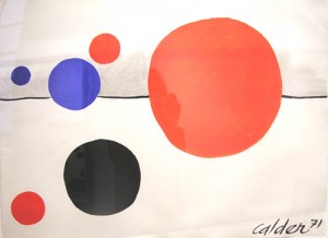 A versatile artist, he created lithographs, toys, paintings, tapestry and designed carpets. He was born the son of sculptor Alexander Stirling Calder, and began making sculptures of his own at a young age. After attending New York’s Art Students League and taking a job as a sketch artist for the National Police Gazette, he moved to Paris at the age of 26 and opened his own studio. Shortly after, having been urged by fellow sculptor Jose De Creeft and influenced Serbian toy merchants, he took to creating toys, developing his own series called Circque Calder, a combination of wire sculpture and kinetic art that resembled a miniature circus and which is currently on display at the Whitney Museum.