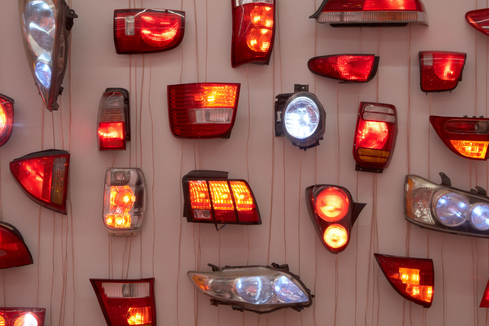 Marking her first exhibition with Bortolami Gallery in New York, artist Madeline Hollander presents an ambitious and enigmatic new installation at the gallery’s small-scale space at 55 Walker in Tribeca, titled Heads/Tails. Primarily known for her work in choreography, performance and dance, Hollander’s work here is her first major solo exhibition without human actors. The installation consists of hundreds of used automobile headlights and taillights, drawing on local contexts and systemic interventions to turn Hollander’s interest in both human agency and technological networks, and the feedback systems that dictate and reshape the behavior of both. (more…)
