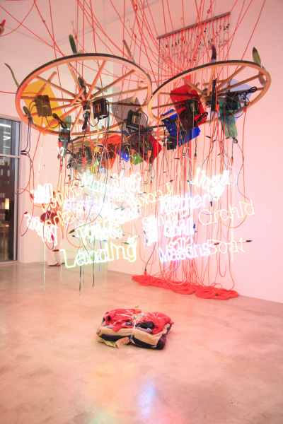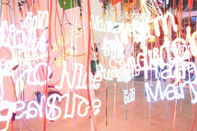 Beginning at 10 am, a media reception in the convention center hosted champagne, deviled shrimp and an opportunity to peak at the 200 gallery displays including 1500 artists. Held in a maze of white walls, it was immense and intimidating in size and visual stimulation. One critique is that at an event this large, the most time one can dedicate to a piece is a few seconds; no matter- as is widely known almost all the displayed pieces are already sold. So why head to Miami? Regardless of its commercial grandeur, intimidating size, and general over-exposure (most of New York has headed this way- and it is more likely this year to run into a record label executive, magazine intern, or investment banker than a legitimate artist), Basel and the manifold associated satellite fairs expose the state of the art world today, the commercially-accepted frontiers, the coinciding limitations, as well mandatory networking opportunities.