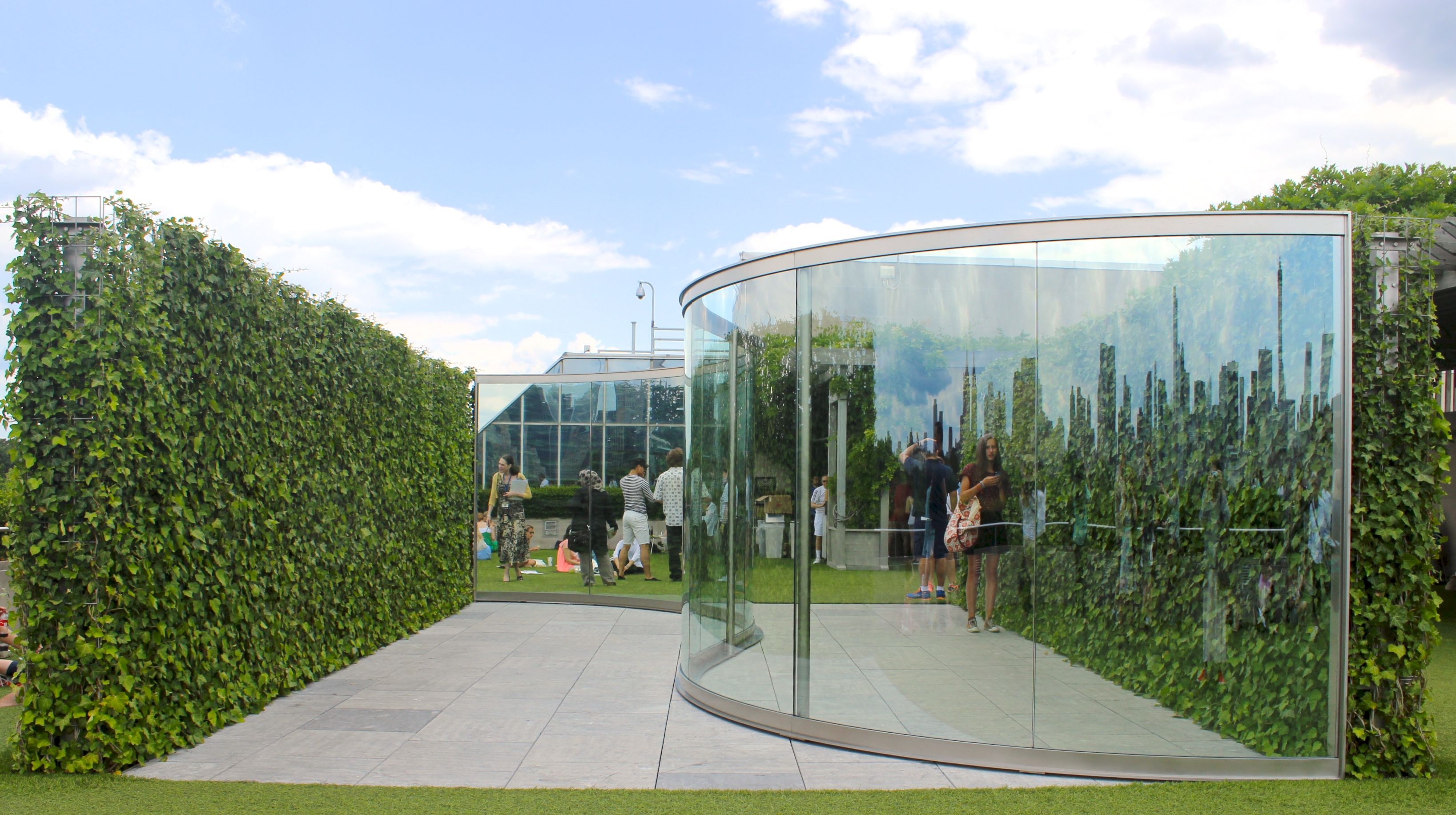 The annual rooftop commission at The Metropolitan Museum of Art always manages to draw a crowd, whether it be Imran Quereshi’s bloody installation last year, or Tomás Saraceno’s vastly popular Cloud City. For this year’s Rooftop Commission at , the Met has sided with a more heritage artist, Dan Graham, working in conjunction with Swiss landscape architect Günther Vogt to create the work Hedge Two-Way Mirror Walkabout (2014). Graham, 71, known for his conceptual bent and exploration of multiple mediums, including drawing, painting, sculpture, photography, installation, and performance art, has long focused on how architecture directly impacts its occupants and shapes their experiences of looking, a strikingly perfect fit for the Met’s scenic view and unique location.