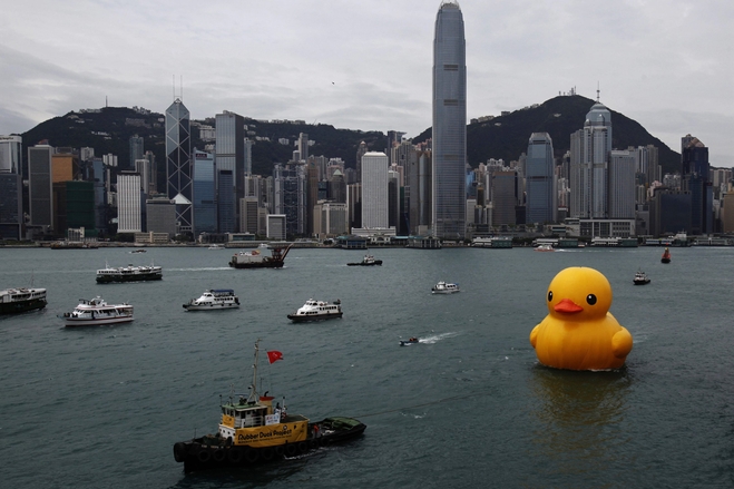 A giant, inflatable rubber duck sculpture by artist Florentijn Hofman has been installed in the port of Hong Kong, bringing residents out in droves to see it floating in the harbor. While the duck has traveled to a number of cities around the world, the fervent response to its arrival in Hong Kong has bordered on cultural phenomenon, with restaurants making special rubber-duck themed foods and politicians praising the sculpture for the “limitless amounts of joy” it has brought to the city. (more…)