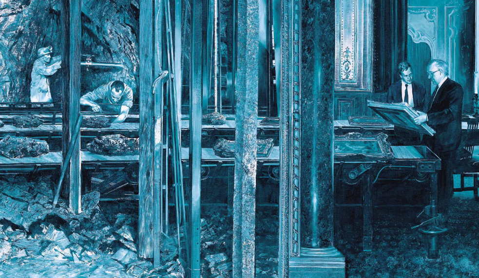 Mark Tansey, The Raw and the Framed (1995), via Christie’s
