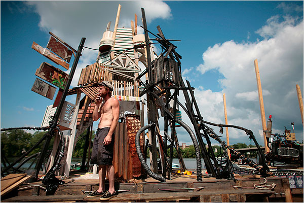 Famed street artist Swoon and crew float junkyard utopia downstate to Deitch Studios in LIC [NYTimes]