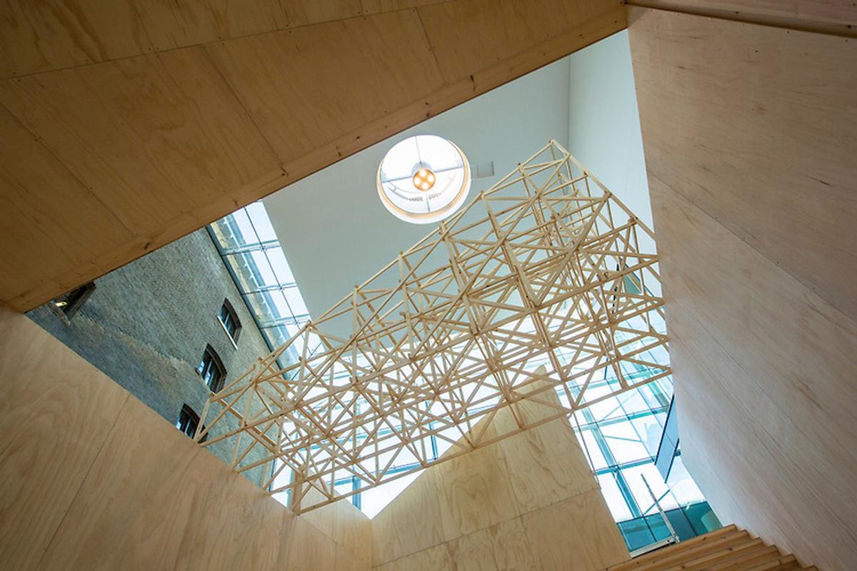 The result of a major commission project, Richard Wentworth‘s “Black Maria,” a timber theatrical structure set within the atrium of the Granary Building in the Saint Martins College of Art and Design, King’s Cross, is an installation that acts as a central public space during the day and a screening and discussion room during the evening and night. The structure was opened for its 4-week run on February 13th, 2013, and is available for viewing during normal hours at Central St. Martins.