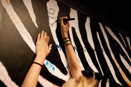 Art Observed was on site again this year for the RxArt + Chanel Beauté 11th Annual PARTY Benefit. Imbibing works by contemporary artists such as Nate Lowman (who’s Reverse Snowman Holding His Own Head was the highest going piece, at $24,000) and Dan Colen, Miranda July, and Yoko Ono, guests bid via silent auction, the proceeds going toward a good cause. According to their website, “RxArt is a non-profit organization dedicated to placing original fine art in patient, procedure and examination rooms of healthcare facilities. Our mission is to improve otherwise sterile environments through contemporary art, promote healing, and inspire hope in patients, families and staff.” Held at the Highline Stages in Chelsea, party-goers included artists KAWS, Terry Richardson, Aurel Schmidt, and José Parlá, among other celebrities and organizers such as Bill Powers and Jen Brill.