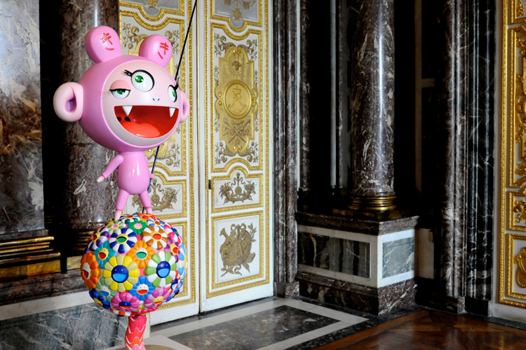 Currently on view at the Château de Versailles are works by renowned Japanese Pop artist Takashi Murakami. The internationally celebrated contemporary artist exhibits 22 works throughout the Palace and the gardens, including 11 pieces created specifically for the exhibition. The show follows the international success of Jeff Koons, who exhibited at the Palace in 2008, and French Pop artist Xavier Veilhan, who created site-specific works at Versailles in 2009.
