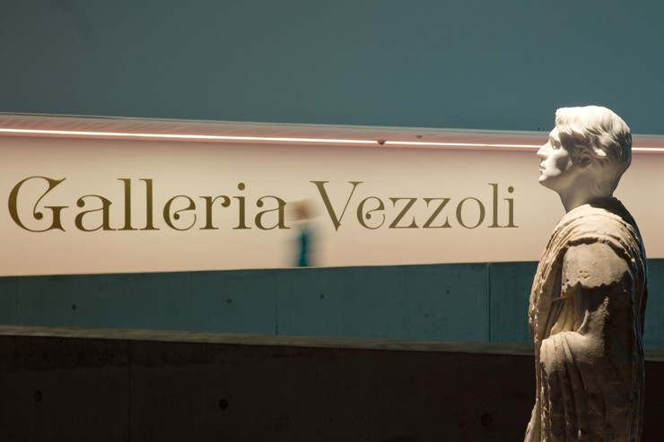 MAXXI in Rome this weekend closed the exhibition of Galleria Vezzoli, a gallery cum timeline of Francesco Vezzoli’s artistic career, and a self-created tribute to the artist, beginning from his embroideries in the 1990s and continuing to his more recent video works and sculptures made of marble.  The exhibition was part of a larger exhibition entitled The Trinity, Galleria Vezzoli and was the first in a three-part project, Vezzoli in three different locations: at MoMA PS1 in New York and MOCA in Los Angeles. The works in the exhibition at MAXXI mimiced a 19th century museum aesthetic, but were placed within the contemporary architectural context of the gallery space, designed by architect Zaha Hadid.