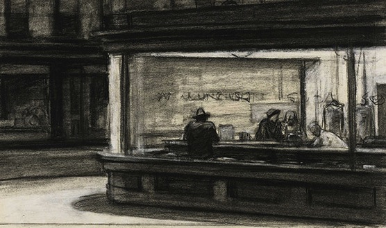 Edward Hopper, Study for Nighthawks, (1941 or 1942), via The Whitney