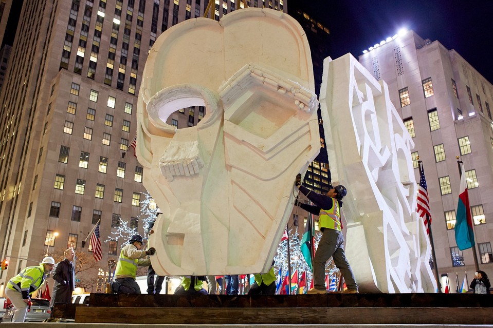 Thomas Houseago's Mask goes up at Rockefeller CenterArtist Thomas Houseago is the latest artist to install a major large-scale commission at Rockefeller Center this week, as his immense Masks installation finishes completion this week for a Tuesday unveiling.  “It’s so risky, and it’s so terrifying,” Houseago said. “Hopefully kids will enjoy walking in it. And maybe one of those kids will think about being an artist, and that would be fabulous. That’s always the dream, that you give people that space to wonder.” (more…)