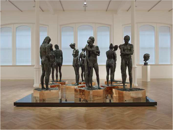 On view at Pace London through mid January is an exhibition highlighting new sculptures by Irish artist Kevin Francis Gray. These realistic, detailed works were crafted from bronze and marble in a traditional manner uncommonly seen in the contemporary art world. Included in the display are five double life-size bronze heads, a group of twelve life-size nude figures cast in bronze, and a life-size sculpture of two white marble figures alluding to the tradition of covering of dead bodies in Judeo-Christian cultures.