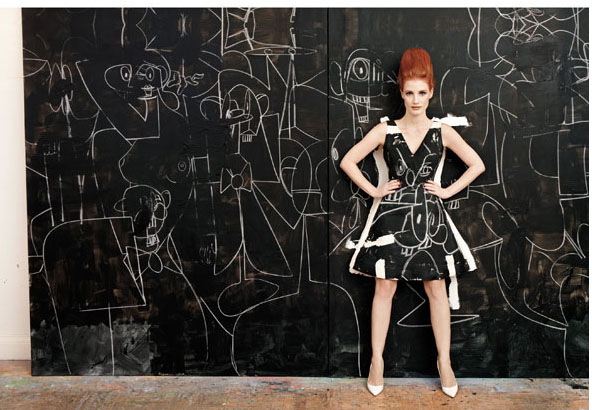 Jessica Chastain has participated in work by four artists for W magazine: George CondoRineke Dijkstra, Chantal Joffe and Mickalene Thomas. Each made a work using Chastain as part of the piece, where she posed for a photograph or a painted portrait; in the case of George Condo, she inspired a work that is neither: “I wanted Jessica to become part of the painting and then appear to come off it, as if she were breaking free and leaving behind an empty space,” he said. (more…)