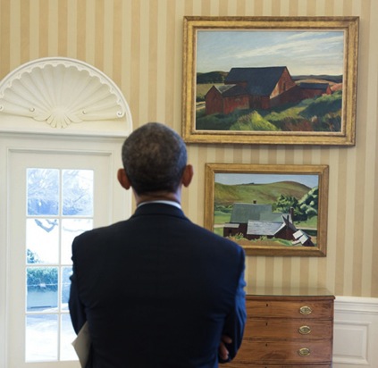 The Whitney Museum has loaned a pair of Cape Cod landscapes by Edward Hopper to the White House, where they have been installed in the Oval Office. “We are pleased and honored to lend two paintings by Edward Hopper—the artist with whom the Whitney Museum of American Art is most closely identified—to The White House for display in the Oval Office,” said Director Adam D. Weinberg. “We hope these beautiful Cape Cod landscapes will give great pleasure to President Obama and to all who see them.” (more…)