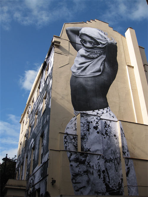 Some large works mark JR’s return to London from NYC (previously covered by AO here) for a solo show at Lazarides [Woostercollective]