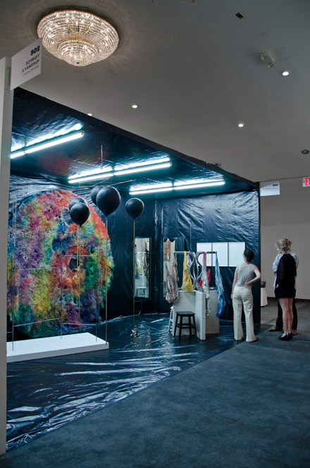 The New Art Dealers Alliance (NADA) art fair explores “new or underexposed art that is not typical of the ‘art establishment.'” Posting up nearly 50 blocks north of the main fair—Art Basel Miami Beach—the satellite fair moved to its Deauville Beach Resort location in 2009 to cut costs, making it a more affordable venture for the younger galleries while remaining a non-profit organization. Since first launching in 2003, the fair has clearly demonstrated the demand for emerging artists and their work, many of the galleries consistently selling out their booths within the first few days of the fair, if not hours. And despite this year’s questionable global economic environment, the fair proved a success once again, with galleries like Lisa Cooley, Kate Werble Gallery, The Hole, The Journal Gallery, Leo Koenig Inc., and White Columns all pleased with the results, prices topping out around $50,000. Also at the fair, multimedia artist Jayson Musson A.K.A. Hennessy Youngman lectured/performed “His History of Art” Thursday evening.