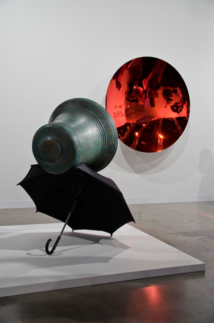 Allora & Calzadilla, Umbrella and Bell (2011), front; Anish Kapoor, Untitled (2011), behind. At Lisson Gallery, booth J1. All photos on site for Art Observed by Caroline Claisse.