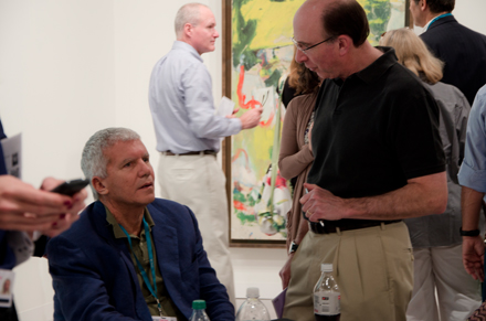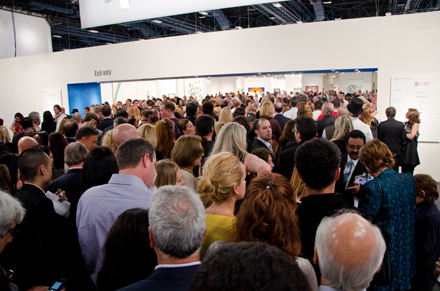 International collectors and art enthusiasts filled the Miami Beach Convention Center for the Wednesday preview of Art Basel Miami Beach 2011. While the maze of gallery booths could seem overwhelming, buyers were able to navigate through for a solid day of sales and works placed on reserve. Larger galleries such as Gagosian, David Zwirner, and Sprüth Magers sold several works and editions thereof. Speaking with Neil Wenman of Hauser & Wirth, “We’ve had a great response on the opening day. In particular for works by Thomas Houseago, Rashid Johnson, Paul McCarthy, Matthew Day Jackson, Richard Jackson—all works sold and all available editions.” Jenny Holzer’s new paintings at Sprüth Magers sold for upwards of $300,000, as well as Condos and Krugers at the booth. Lesser-known galleries were pleased to gain the exposure the fair offers; if not selling right away, interest was high and therefore also prospects for the remainder of the fair. Gallery Arratia Beer said the crowd was very engaged and informed, also saying, “The fair feels very international. It’s also good to see young internationals here too.” The newer Latin American presence was reportedly strong, both exhibiting and buying, as expected in Miami as opposed to the Frieze or FIAC fairs across the Atlantic earlier this year. Celebrities on hand included Julian Schnable, Eli Broad, Brett Rattner, Naomi Campbell, and Sean Combs/P. Diddy.