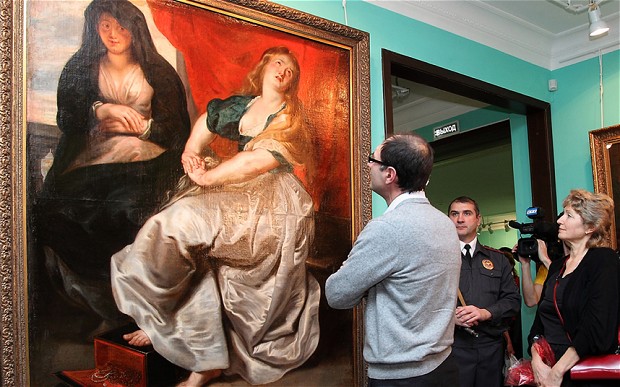 Monday, November 19th, 2012A painting that was previously believed to be a copy of a work by Peter Paul Rubens is now being considered an original. Mary Magdalene in mourning with her sister Martha has been restored, revealing new imagery. The head paintings conservator from the Hermitage museum in Saint Petersburg, Viktor Korobov, has examined the piece and believes it to be authentic. The work was discovered in Irbit, a small town near Yekaterinburg, Russia. (more…)