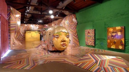 Os Gemeos (Portugese for ‘the twins’) are Brazilian identical twin brothers Otávio and Gustavo Pandolfo. Fermata, their latest exhibition in Vila Velha, Brazil, is a graffiti-minded colorful world of both fantasy and reality. The show consists entirely of new works, most of which were developed on site at the Museu Vale, which is an old train station now converted into a museum. The show’s name ‘fermata’ has musical roots and is defined as the interlude between musical tempos in an opera, inspiring the new paintings, interactive works, sculpture, and video. “Fermata, in this case, symbolizes the intervals needed to create the right mood for every action that will follow,” said artist Gustavo Pandolfo.