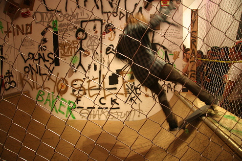 When asked about his inspiration and creative process Neckface answers: “Somtimes its just fucked up situations that i think of in my head, sometimes its what i would really like to do to someone, whether it would be an ex-girlfriend or somebody who pissed me off earlier in the day …” It is the brutal, almost primal and ironically- the unmasked, that pulls the viewer in Neckface’s world. Sartre writes “I am the one who pulls myself from the nothingness to which I aspire: the hatred, the disgust of existing, these are as many ways to make myself exist, to thrust myself into existence”. Neckface’s step into the realm coined as “aesthetic of disgust” is endearing and effective for it is uncalculated and raw. “Devil’s Disciple” will be opening at O.H.W.O.W. on October 31, 2009. “Halloween is my day. Some people like Christmas, I like Halloween” explains the artist.