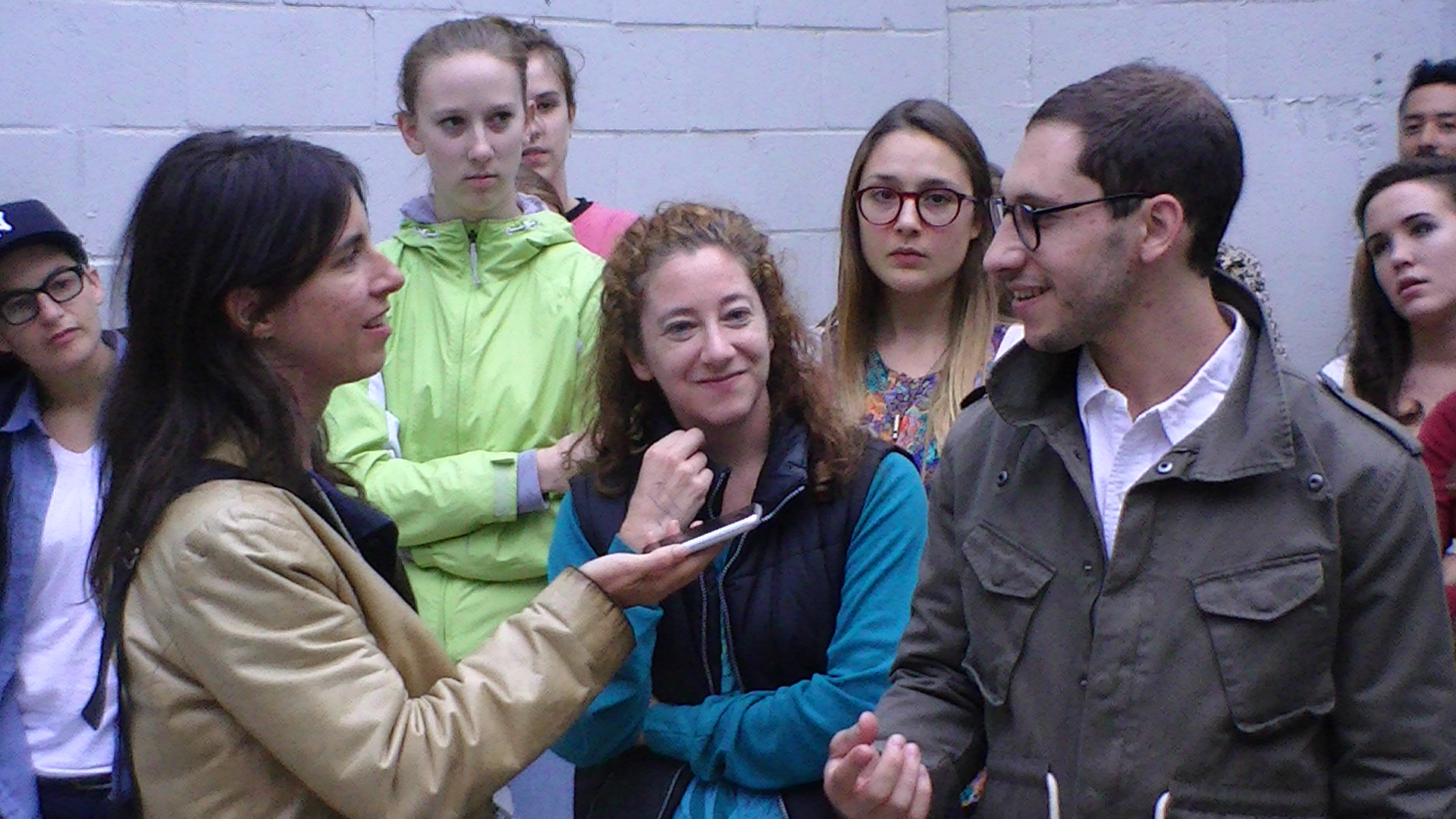 Noémie Lafrance recording the group discussion after a performance.