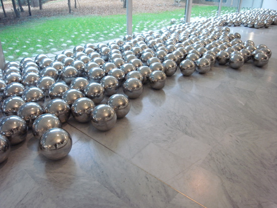 Kusama’s interactive ‘Narcissus Garden,’ consists of 1500 mirror balls. 2009, Via Design Boom