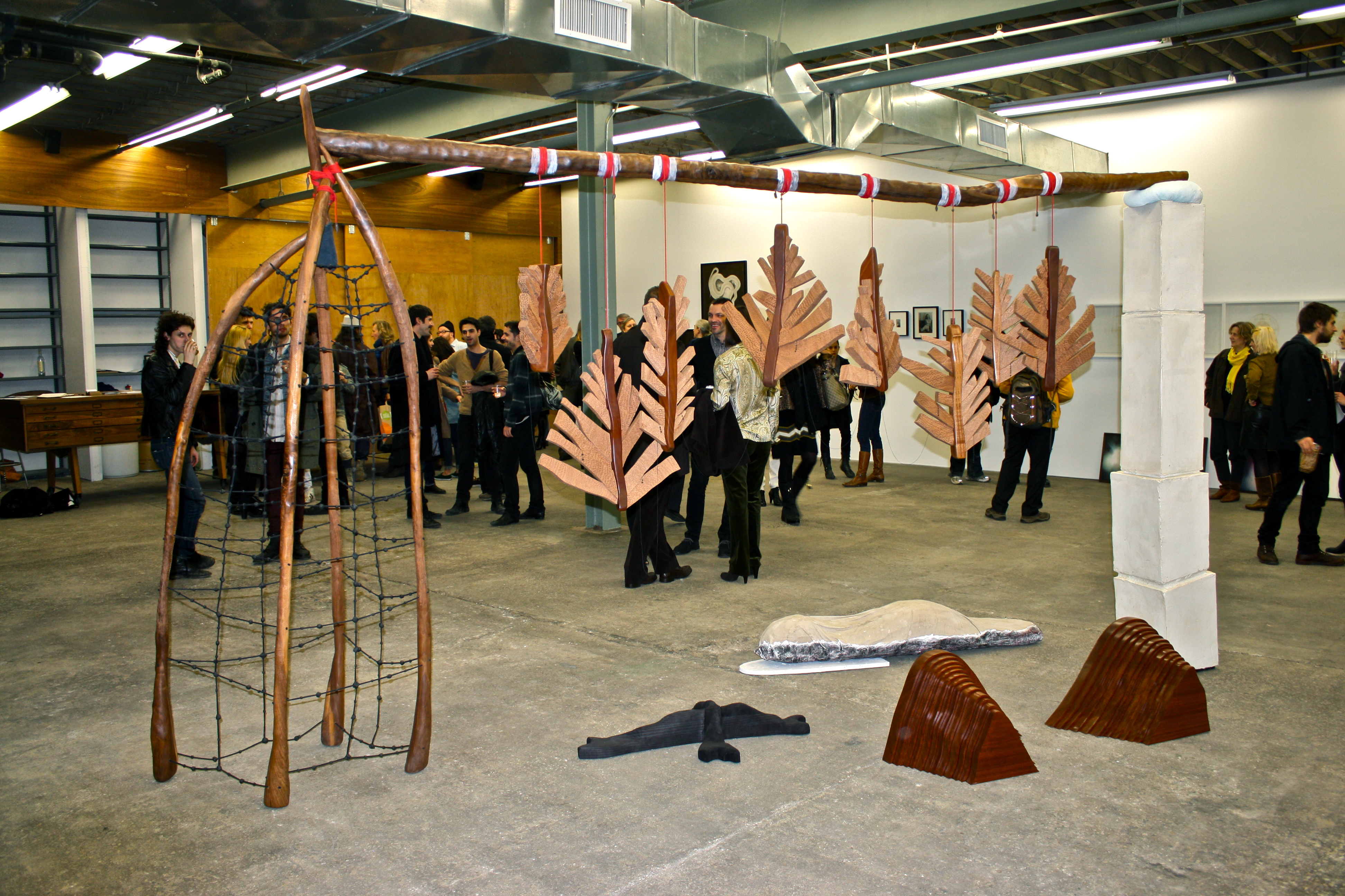 A large-scale group show opened last Friday night in Greenpoint at Allan Nederpelt, showcasing 17 new artists such as Tony Oursler, N. Dash, Rachel Garrard, and Matthew Stone in the colossal space on Freeman Street on the very north-east tip of Greenpoint. The recently opened Allan Nederpelt exhibition space housed a large number of works all concerned with the idea of “Art addressing Metaphysics” and the artist’s relationship to the external world, the exhibit titled “All That is Unseen.” Curators Meg O’Rourke and Caris Reid believe that this interest in the ethereal and otherworldly is partly a reaction to the mounting scientific complexity of our time, and marks the beginning of a transition in creative attitude. O’Rourke states in the press release, “Just as delving into spiritualism (along with shifts in science and technology) led to the birth of abstract art at the beginning of the last century, we feel we are currently at the edge of a collective shift.” Works ranged in a variety of mediums, from wooden sculpture to new media to electrical design.