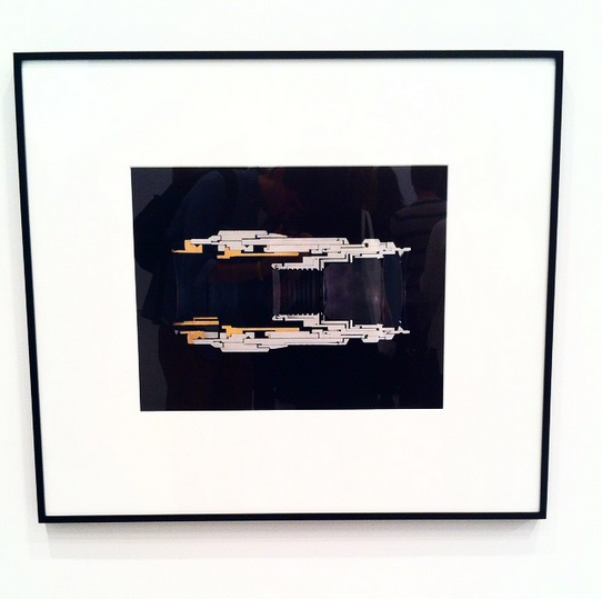 Christopher Williams, Cutaway model Leica Leitz Wetzlar Tele-Elmar 135/4.0 Focal length: 135 mm Aperture range: 4 – 22 Number of elements/groups: 4/4 Focusing range: 1.5 m – infinity Angle of range: 18 degrees Filter thread: 39 mm Weight: 405 g Dimensions: 53.4 × 122.69 mm Manufacturer part number: 11850 Lens design by Dr. Walter Mandler Manufactured by Ernst Leitz GmbH, Wetzlar, Germany Studio Rhein Verlag, Düsseldorf March 14, 2013, 2014 Inkjet print on cotton rag paper 7 1/4 x 21 7/8 inches (43.8 x 55.6 cm) WILCH0427 (2014), via Art Observed