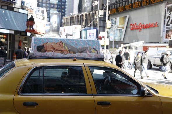 Throughout January, artwork by Chuck Close and Kehinde Wiley will travel New York City atop 500 taxi cabs, thanks to art enthusiast and ShowMedia president John Amato. With an estimated value of $100,000, Amato said, “I can do this as my annual holiday gift not just to myself, but to everyone who enjoys seeing the art as it travels around New York City’s streets.” ‘Art Adds’ is the second annual collaboration between ShowMedia and the Art Production Fund, a campaign bringing art to the streets for all to enjoy. The inaugural year featured Alex Katz, Shirin Neshat, and Yoko Ono.