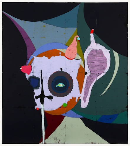 Currently on view at Contemporary Fine Arts Berlin is “Neue Arbeiten,” an exhibition of recent work by fraternal collaborative Gert & Uwe Tobias (b. 1973). The show features over fifty pieces by the Romanian-born twins, including ceramic sculpture, drawings, collages, and the colorful, large-scale woodcuts for which they are best known. Their interdisciplinary practice incorporates folkloric imagery, regional iconography, and popular culture, creating a self-referrential, multimedia visual narrative. Like all of their previous exhibitions, they designed a site-specific woodcut poster for the CFA show, which comments upon and participates in the body of work on view.
