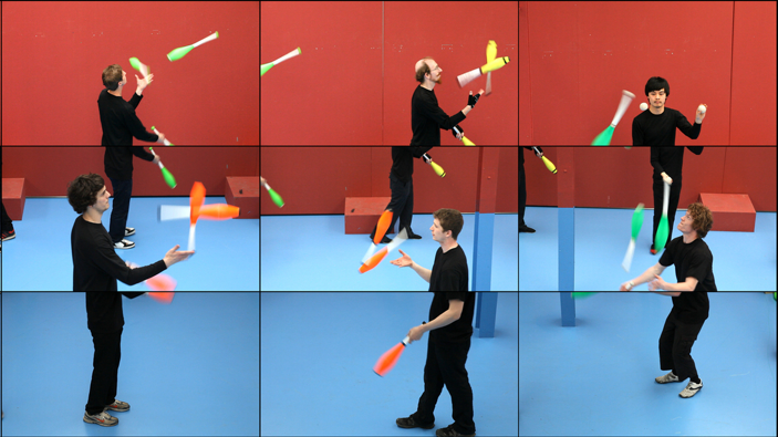 The Jugglers, June 24th 2012 (2012), the U.S. premiere of artist David Hockney’s first video installation, presents a panorama of bright color and whirling objects, tinged with mordant humor. In a darkened room on the second floor of the Whitney, the viewer will find a bare theater with a single long bench and eighteen screens arranged in a grid. The screens switch on to reveal a composition of red and blue horizontal blocks almost as flat as Hockney’s early acrylics. Also bearing similarities to his Polaroid collages, Hockney has chosen to create a fractured composition using video to achieve the same effect by combining feeds from eighteen different cameras mounted in his Yorkshire studio on a sunny day. The light is even and saturates the space, permitting no highlights or shadows, and without figures, the red and blue studio looks relatively seamless on the screen. (more…)